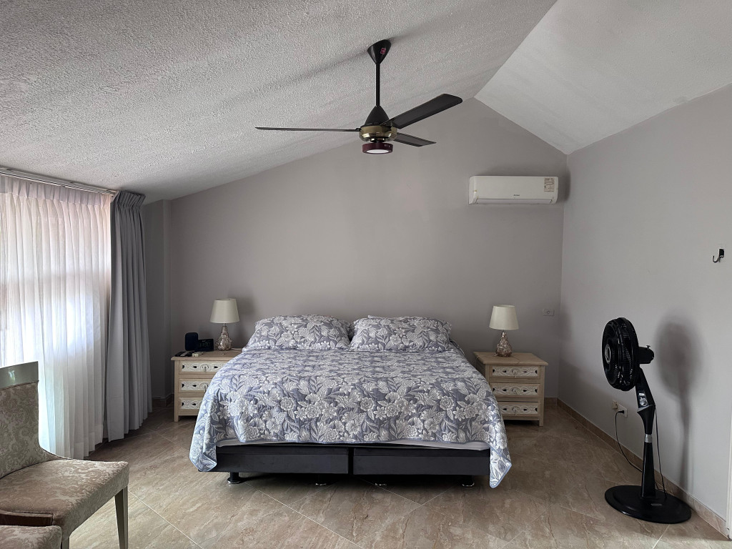 En venta espectacular casa de 375 m² construidos sobre un generoso lote de 550 m², ubicada en el corazón de Villa Campestre. Esta hermosa propiedad cuenta con 5 habitaciones y 5 baños, incluyendo dos habitaciones con baño privado y walk-in closet, y una tercera con baño y closet. La casa ofrece una amplia sala-comedor, estudio, cocina cerrada que brinda mayor privacidad, estar de alcobas, dos balcones y una terraza cubierta con acceso directo a la piscina del conjunto. También dispone de cuarto y baño de servicio, patio con zona de ropas, y se encuentra en perfecto estado, lista para habitar o con gran potencial de renovación para quienes buscan un estilo más moderno. El conjunto residencial ofrece piscina, salón social y vigilancia 24 horas. La casa incluye parqueadero para tres vehículos y dos amplios depósitos. Precio de venta: $1.300 millones. Ubicación privilegiada, rodeada de tranquilidad y cerca de todo. ¡Una excelente oportunidad que no durará mucho en el mercado!